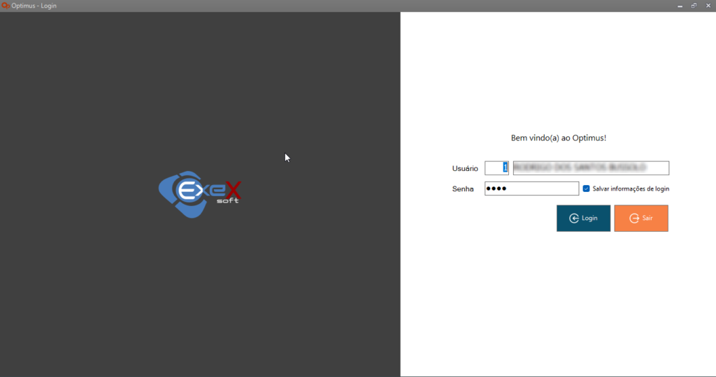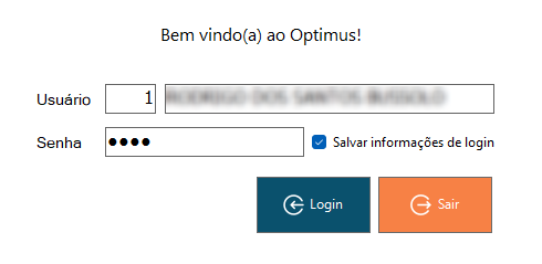 Na tela de login o usuário poderá marcar a opção Salvar informações de login, caso desejável agilizar um próximo acesso ao sistema.